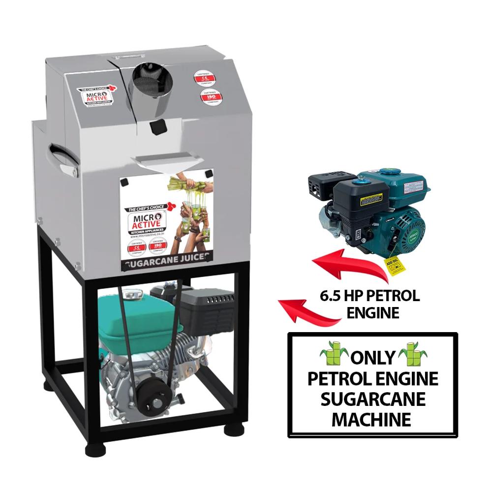 The Micro Active Sugarcane Juice machine 6.5 HP petrol engine is a heavy-duty model ideal for commercial use, offering high-volume production without needing an electrical power source. Key features often include a durable stainless steel body, efficient 3-roller crushing mechanism, and high extraction capacity.